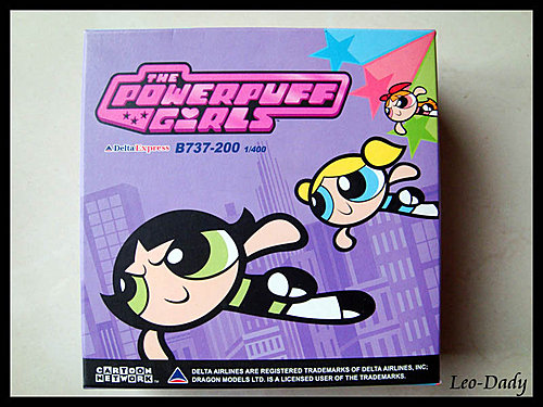 這架達美的飛天小女警彩繪機各位應該或多或少有印象,記得也有網友發表過。此款是DW於2003年出版的1/400模型,由於市面上並沒有1/500的模型,所以儘管它是1/400我還是收下了;這樣也好,因為1/400的B737-200其實size並不大,很難想像再小一號的1/500其精緻度會如何。根據DAC上看到的資料,2001年Herpa和GJ曾經生產過這款彩繪機的樣品機,但最後量產的卻只有2002年的BB及2003年的DW。DW版的主翼及尾翼都是塑膠材質所製,雖然少了一點點重量感,但相對的可以表現出多一點細節,所以說也是各有優缺點。